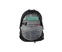 Tilava päälokero sopii suuremmille tavaroille ja sisältää erillisen läppäritaskun. Toinen lokero on varustettu useilla sisätaskuilla, vetoketju- ja tarrataskuilla sekä pienemmillä avotaskuilla, jotta pienetkin tavarat pysyvät siististi paikoillaan. Kaksisuuntaiset vetoketjut tekevät molempien lokeroiden avaamisesta nopeaa ja helppoa. Sivujen verkkotaskut sopivat täydellisesti juomapulloille.