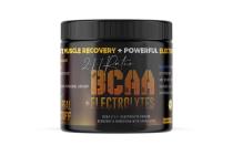 L-leucin, L-isoleucin, L-valin, glycin, L-lysin, L-alanin, isomalt, äppelsyra, magnesiumoxid, kaliumklorid, natriumsitrat, naturlig arom (blåbär), sötningsmedel (sukralos, acesulfam-K), färgämne (antosyanin).