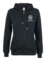 M-Nutrition Premium Naisten Huppari on todella tyylikäs premium-laatuinen huppari. Huppari on valmistettu luomupuuvillasta ja kierrätetystä polyesterisekoitteesta. Siinä on täyspitkä vetoketju, sekä kaksi taskua, joissa YKK-vetoketjut. Hupparia koristaa tyylikkäät valkoiset M-Nutritionin logot, rinnassa sekä selässä.